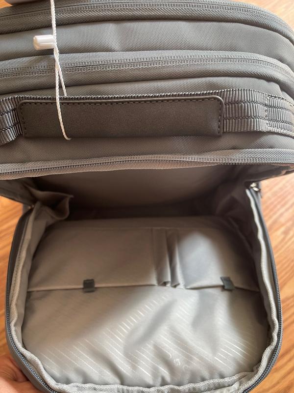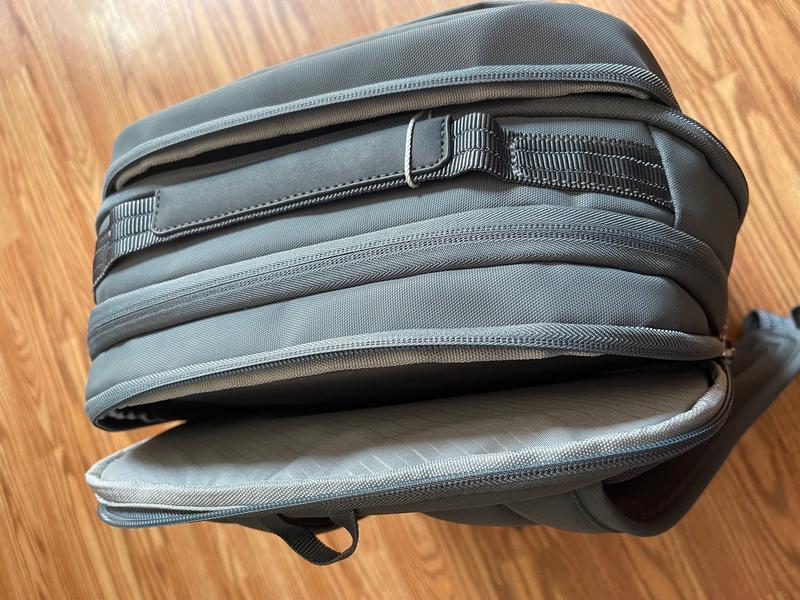 I like the many features and compartments to store things conveniently and safely on trips and daily uses. The zipper main for the main compartment is helpful when the bag is placed under the seat and I need to go to the restroom or take a nap. The color is neutral and yet different than most backpacks. I like also the extended warranty from Samsonite. The separate storage space for a laptop and iPad is huge and well placed on the back side with edge protection to keep a Macbook Pro 16 in safe.
